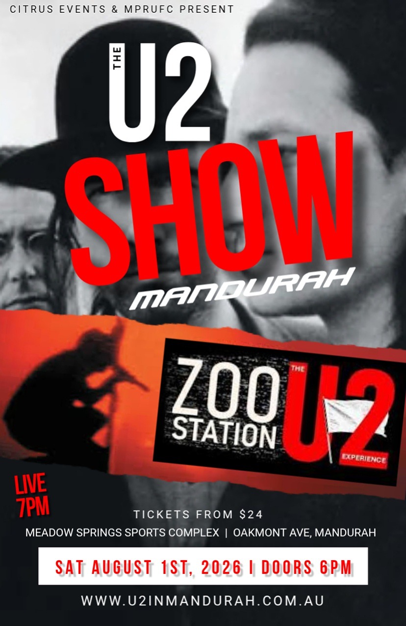 Citrus Events present a fantastic night of live music with the amazing Zoo Station. Featuring some of U2's greatest hits such as "Beautiful Day", "Sunday Bloody Sunday", "Pride", "I Will Follow" and many more well-known international chartbusting greats.
